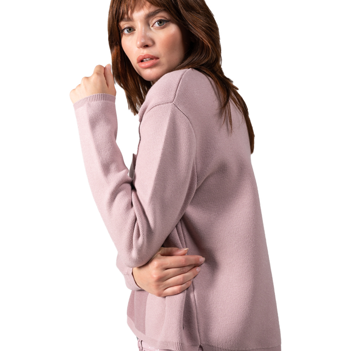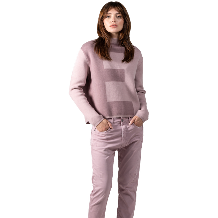 Dein Favorit für die kalte Jahreszeit, der Scarlett-Ladies Pulli mit coolem Jacquard Print lässt sich toll kombinieren. Der verkürzte Schnitt ist vor allem ein Highlight zusammen der Ladies Denim Leona in der Farbe Mauve – siehe Kombinationsbeispiel